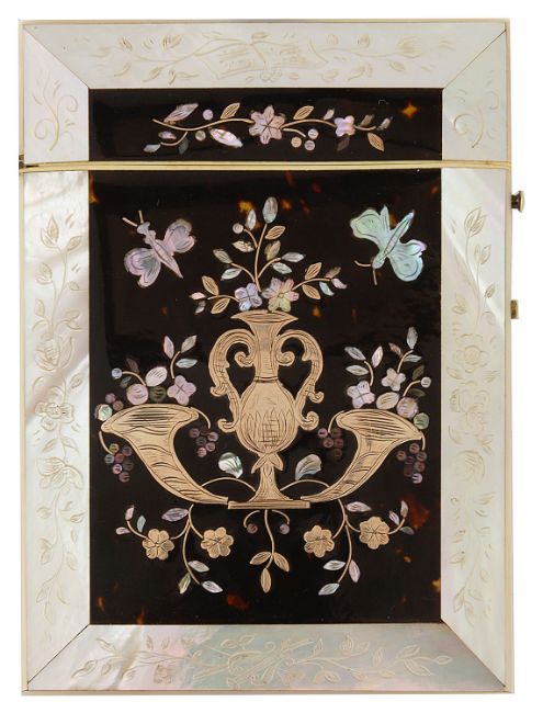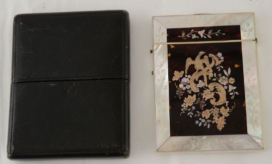 A 19th Century mother of pearl, gold and tortoiseshell inlay card case,