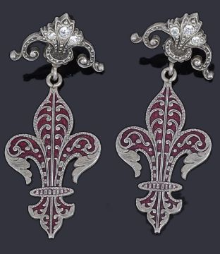 to include a pair of silver red enamel fleur-de-lye earrings suspended from scrolling head set with paste stone with post and butterfly fittings, a gold bloodstone swivel fob suspended on a jump ring, a gilt and steel penknife and similar articulated pencil (a/f), a pair of bead drop earrings with engraved detail and a pair gilt metal paste drop earrings (qty)