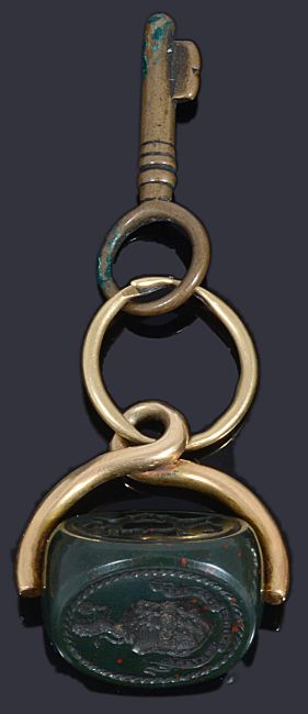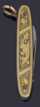 Condition: Fob: jump ring worn, bead earrings: small hole to the bead, pencil: a/f, penknife: wear to gilt decoration, paste earrings: wear to gilt decoration, facets worn and two cracks to the red paste stones