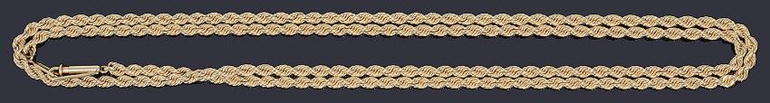 A gold rope chain necklace,