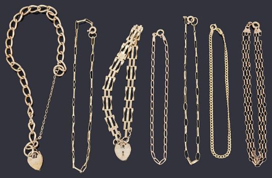 Condition: Good condition, the three row link bracelet some links missing and damaged, wear to the three curb link fine bracelets