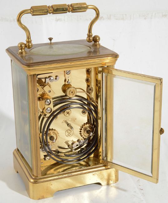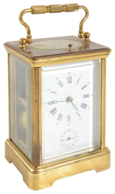 A 20th century French repeating brass alarm carriage clock