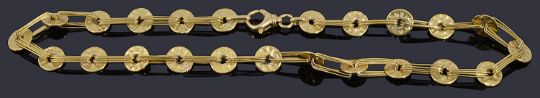 having hoop and three row wire links with lever clasp, stamped with Portuguese gold convention mark 800