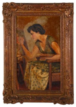 oil on canvas, signed lower left and dated, with hand written dedication from Fortunino to reverse, framed