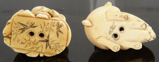 Two late 19th/early 20th century Japanese Meiji period carved ivory netsuke
