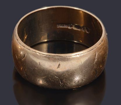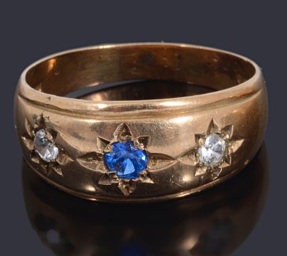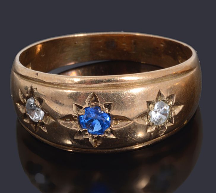 Condition: wedding ring, decoration very rubbed size S. three stone ring: V1/2. engraved ring: P1/2