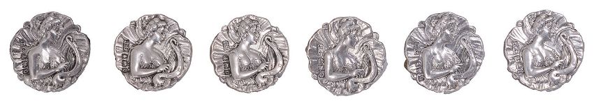 A set of six Edwardian Art Nouveau silver buttons