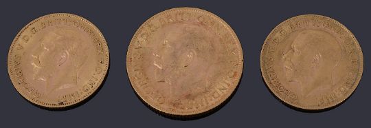 the full sovereign, 1914, the half sovereigns 1912 and 1914, (3)