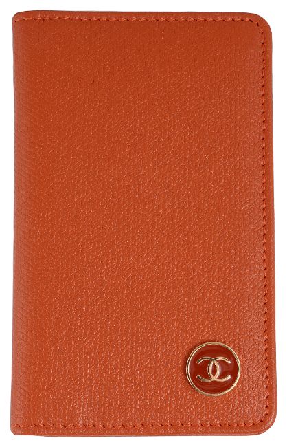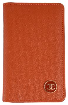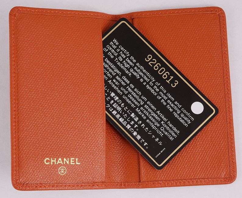 A classic Chanel card holder in caviar orange leatherthe card holder features an enamelled 'CC' to the corner and two cards holder slots to the interior, stamped Chanel, made in Italy, with authenticity sticker and matching card: 9260613measurements: 7cm x 11cmCondition: Excellent condition