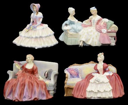 Four Royal Doulton porcelain figures'Sweet and Twenty' HN1298, 'Belle O' The Ball, HN1997, 'The Love Letter' HN2149 and 'Daydreams', HN1731, (4)largest height 16 cm. Condition: Chip to corner of pillow of 'Love Letter', Chip one petal of 'Daydreams petal'