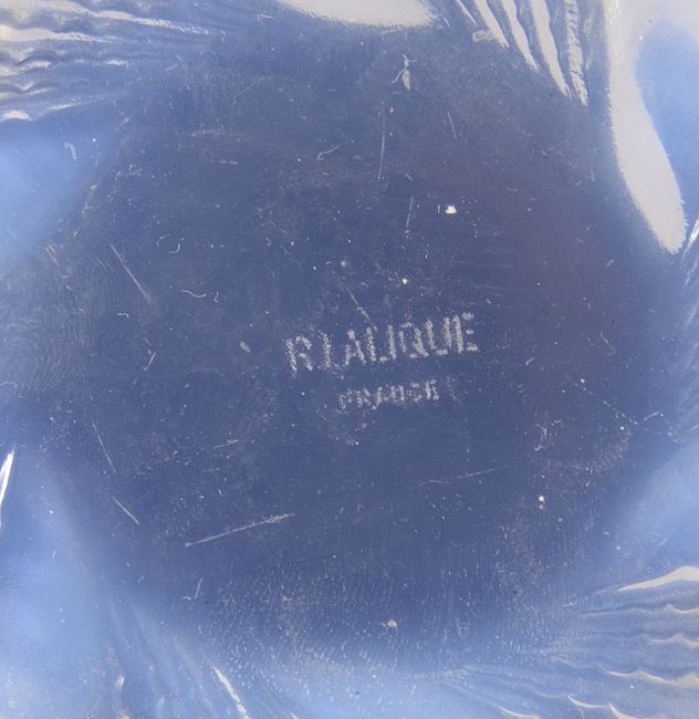 A René Lalique 'Fleurons No.2' opalescent glass plate moulded to the underside with spiralling bands, signed Lalique, Francediameter 27.9 cm., Condition: Fair condition, some light wear and surface wear