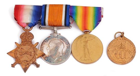A World War 1 medal group awarded to L. Z-838, S.F. Hollyer, Sig R.N.R.R. formed of 1914-15 star, War medal and Victory medal, on ribbons together with a German Den Siegreichen Streichen Streitern China 1900-1901 medal, (4)
