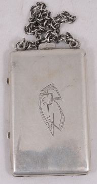 An early 20th century silver and enamel ladies compact unmarked, probably Continentalthe hinged lid decorated in a enamel with a view of the Haggia Sophia beneath two anthemions, the gilt interior fitted with twin compartments and a mirror, the reverse bearing initials, on a suspension chainlength 6.5 cm.Condition: Slight chip to bottom right corner of enamel, otherwise in fair condition