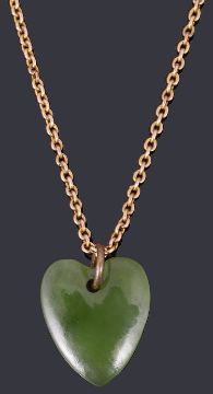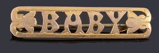 A collection of Victorian and later decorative brooches and a necklaceto include a Victorian diamond set bar brooch with a plain polished bar to the centre and two twisted wire ropes, set with two cushion cut diamonds marked 15ct, a 9ct gold 'baby' brooch, two gold crescent bar brooches, a gilt metal cameo brooch and a jadeite heart pendant on chain (qty)15ct gold brooch total weight approx: 4.3g, other three brooches: 5.5gCondition: Cracks to the cameo brooch with some soldering and replacement pin, wear and dent to the 15ct brooch,replacement pin to the baby brooch (not gold) chain tests as approx 9ct, bolt rings not gold