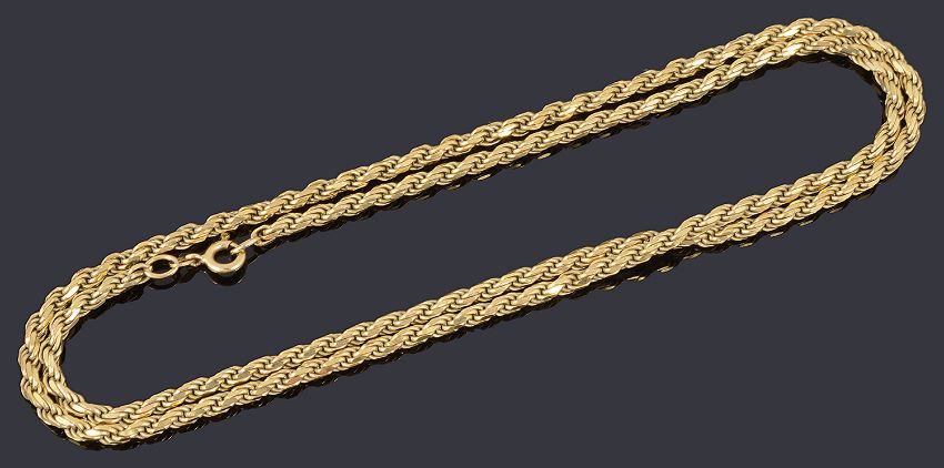 A 9ct gold twisted rope chain necklacewith bolt ring clasptotal weight approx: 21.3g, length approx: 61cmCondition: In gold condition