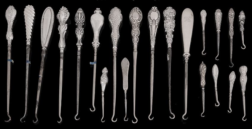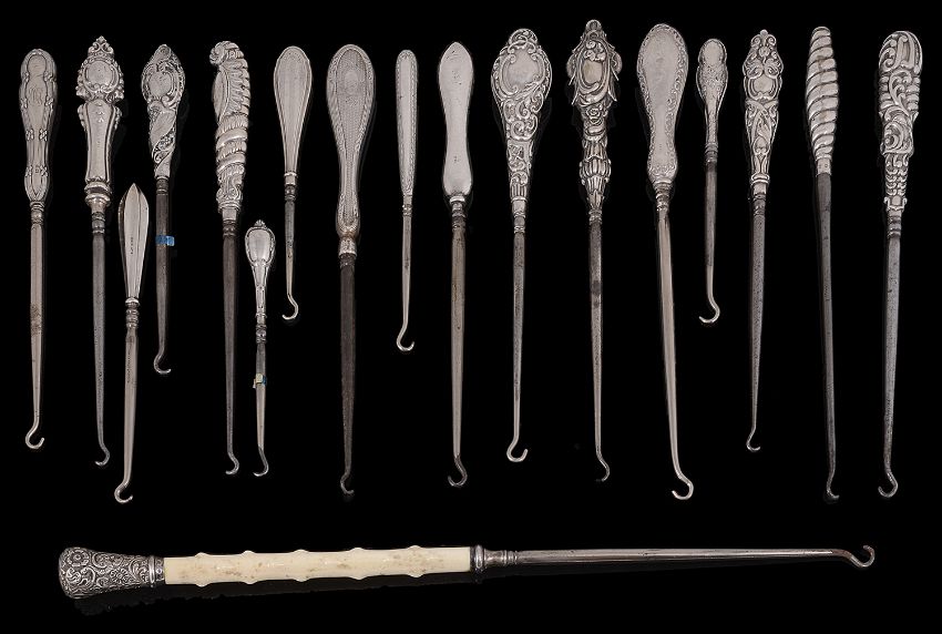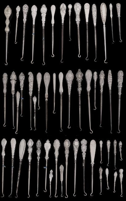 An extensive collection of mainly Victorian silver handled button hooks(qty)the largest 39cm Condition: All in mixed condition