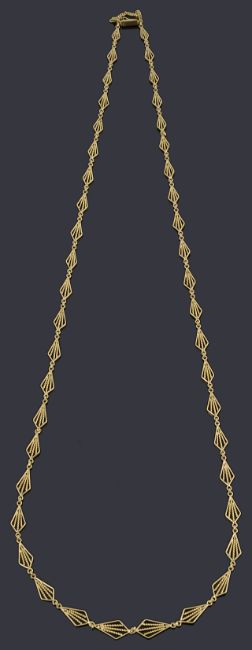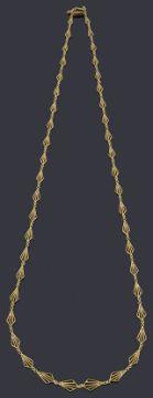 A gold graduated fancy link chain necklace with box clasp