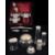 Condition: One salt is absent from the set. Pepper pot with a couple of dings, foot slightly bucked, Indian coin napkin ring with loss. Powder pot and pin pot have dents to mounts. Each salt has splits / holes around foot. One has salt corrosion