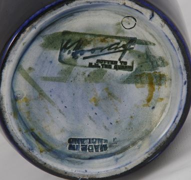 decorated with the pomegranate pattern against a dark blue ground with impressed marks to base