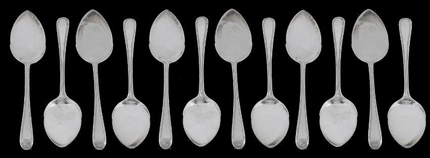 An Edwardian set of twelve beaded ribbon and reed pattern ice cream spades
