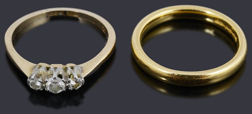 22ct gold ring: 4.2g ring size: L1/2, ring: 2.0g size: M