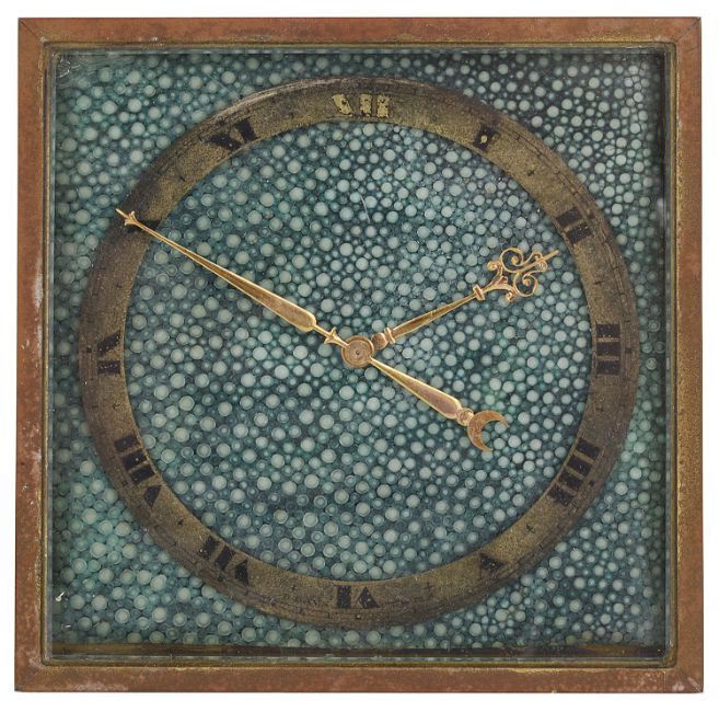 Condition: Chip to glass top right corner. Gilt brass frame and chapter ring has oxidised. Shagreen is bright