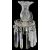 each having a silvered metal rosette backplate issuing three branches fitted with a bud shaped sconce and petal edged drip pans suspended with drops and lustres, (2)