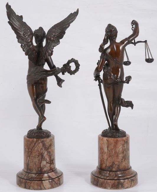 A pair of bronze figures of 'Justice and Peace'