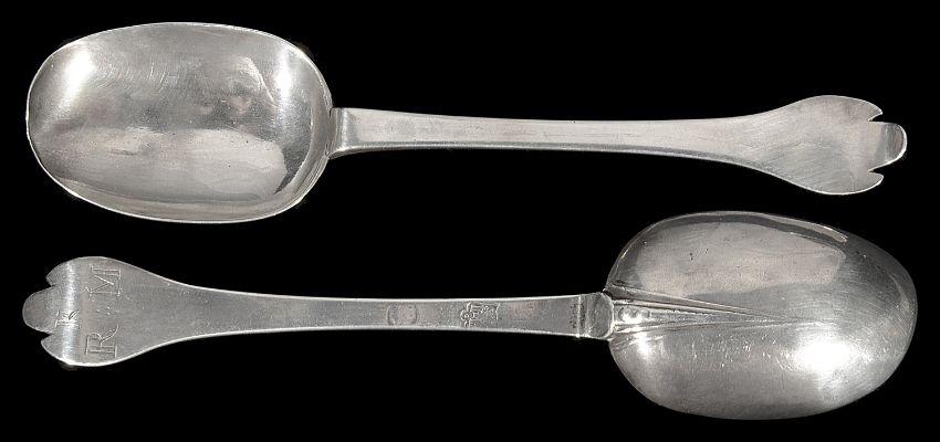 A pair of William III silver trefid spoons