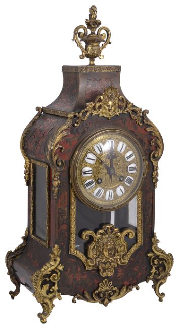 A French Louis XV style red tortoiseshell boulle and gilt metal mounted mantle clock c.1900