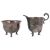 Condition: Legs are pushing the sides of the milk jug and sugar basin. Short cracks/splits at low point between each petal. Milk jug sugar bowls with occasional dings and dents.
