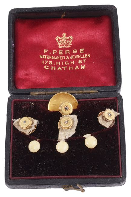 each star set with a rose cut diamond to the centre marked 15ct together with three bone studs (4)