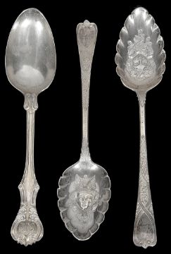 A pair of George III later embossed tablespoons and a Victorian Albert pattern tablespoon