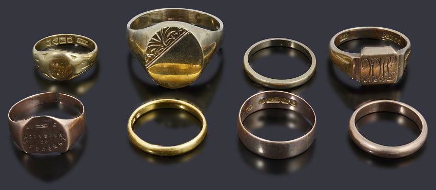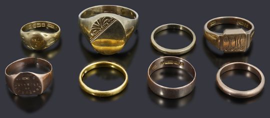 Condition: split to shank on one signet ring, general wear to other rings