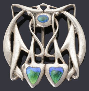 A rare Liberty and Co., Edwardian Art Nouveau silver and enamel buckle