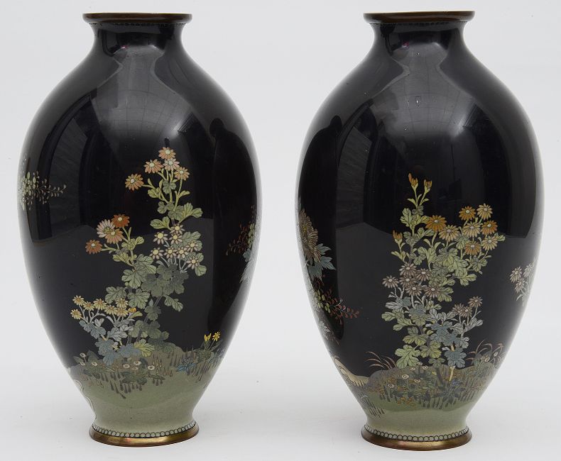 A pair of Japanese Meiji period silver wire cloisonne vases