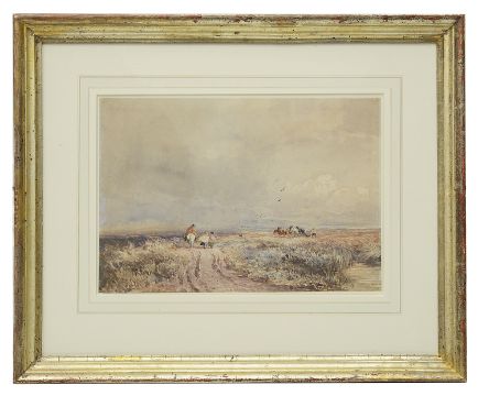 'Crossing the Moor', watercolour, signed David Cox, 1834, mounted, framed