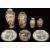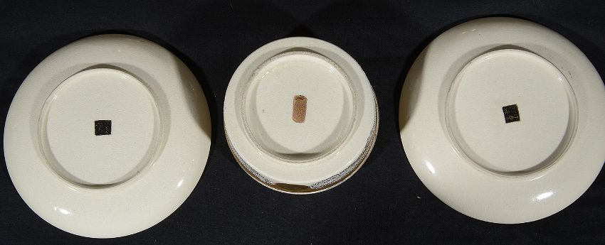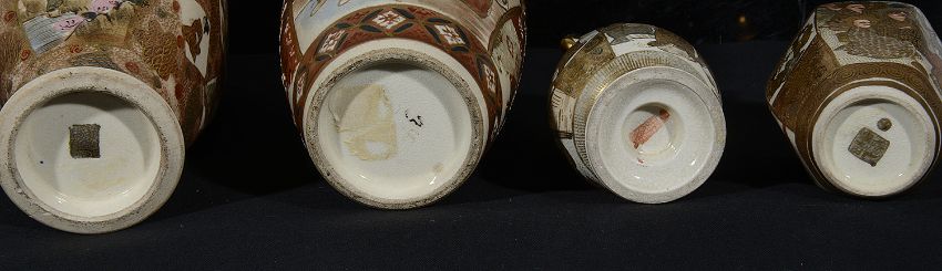 comprising a circular pot and cover (kogo) the lid painted with seated deities, a vase of square inverted baluster form, an ovoid vase, a small tapering hexagonal vase, a small ovoid form vase with twin elephant masks handles and two saucers, all typically decorated with panels figures, (7)