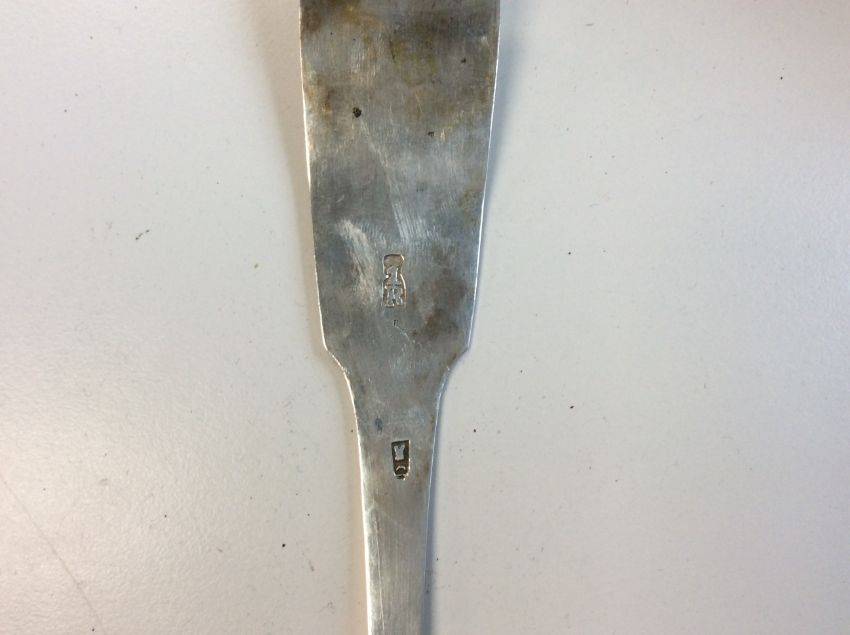 An early 19th century Maltese .916 silver fiddle pattern basting spoon c.1810