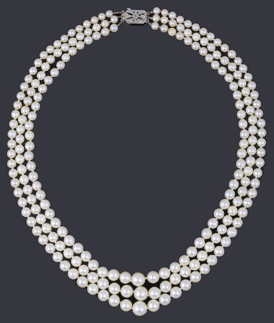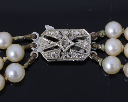 graduated in diameter from 8mm to 5mm to the 9ct white gold openwork tablet clasp set with a rose-cut diamond,