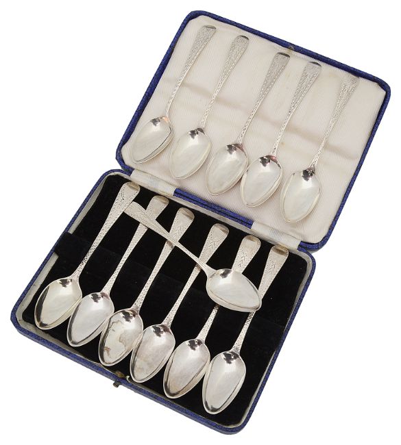 Condition: Overall fair condition commensurate with age. Matched set of teaspoons - two with slightly buckled bowls