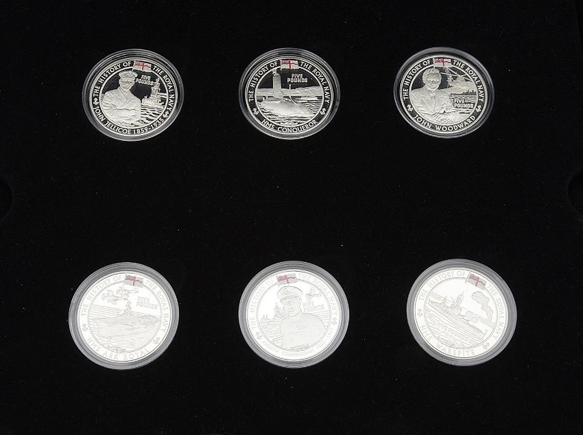 The Royal Mint - The History of the British Navy, a set of 18 .925 silver £5 proof coins