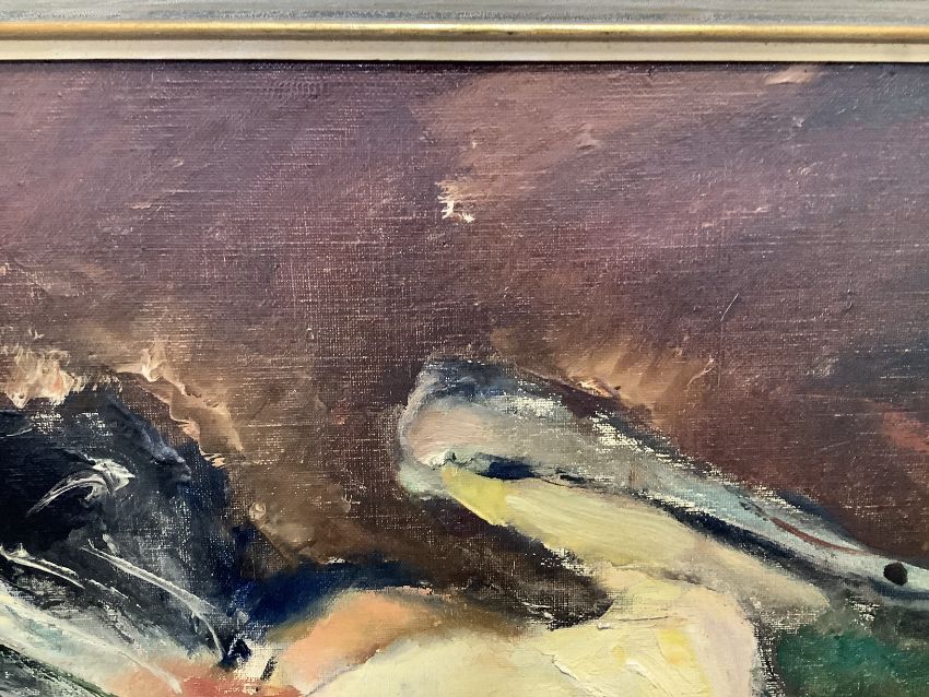 'Study of plucked turkey', oil on canvas board, signed bottom right, framed
