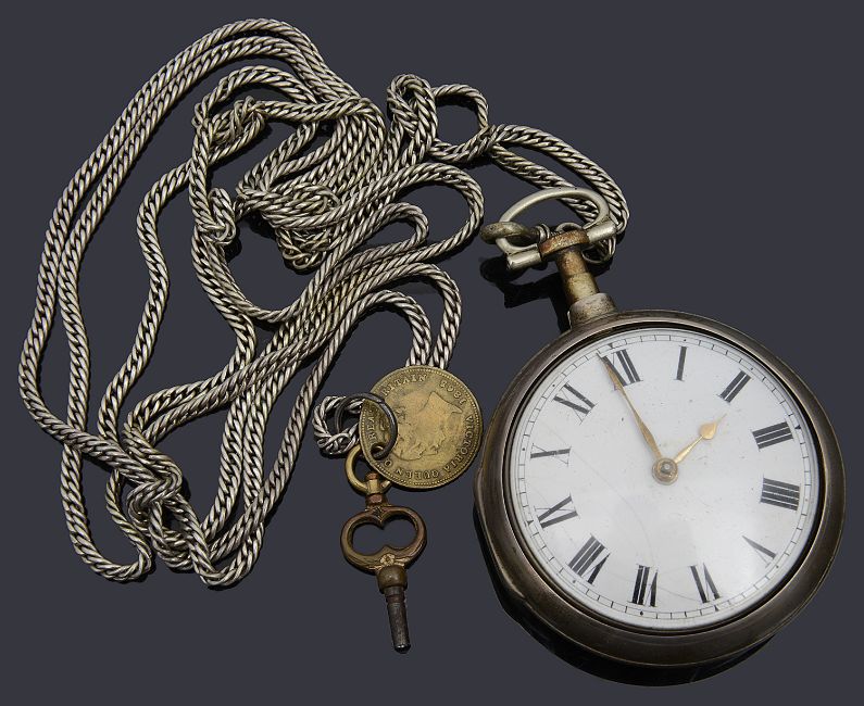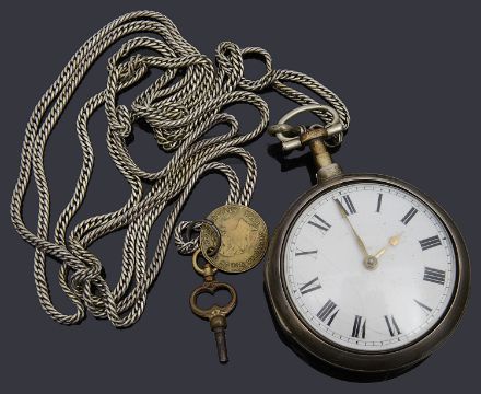 A George III silver pair cased open faced pocket watch