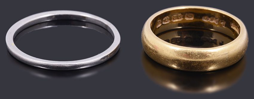 A 22ct gold court shaped wedding ring dated 1903and another platinum wedding ringtotal weight approx: 6.1g, platinum: 2.4g., the gold ring size L/M., the platinum ring size R/SCondition: Both in good condition