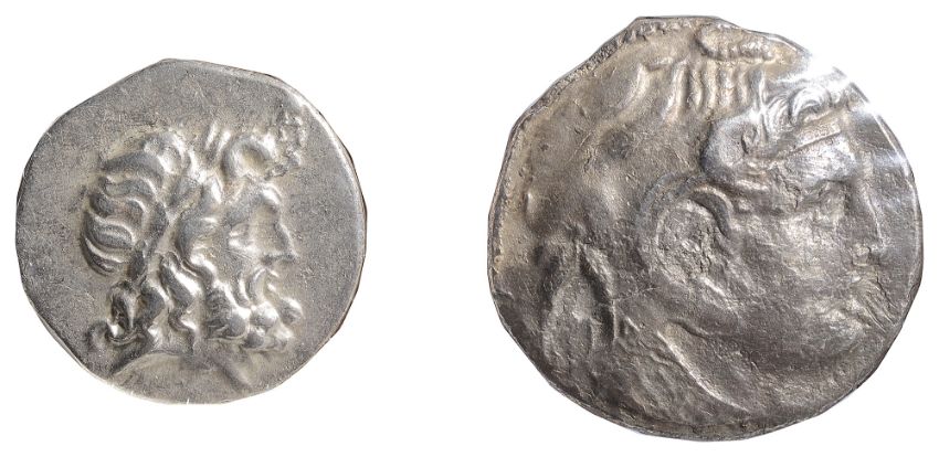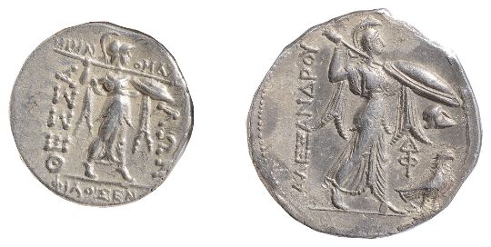 Laureate head of Zeus, right / Athena Alkidemos advancing right, brandishing a spear and holding a shield, an eagle standing to right, (2).