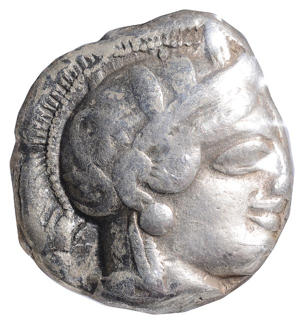 Helmeted head of Athena facing right / AOE, Owl standing right, head facing, olive sprig and berry in upper left field, all within an incuse square.