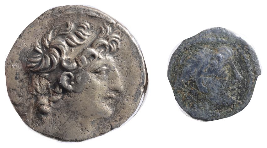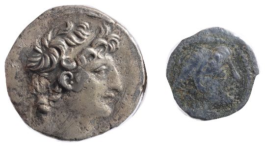 Diademed head of Antiochos right / Winged thunderbolt, (2).