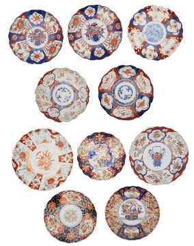 A collection of ten Japanese Meiji period imari palette fluted dishes