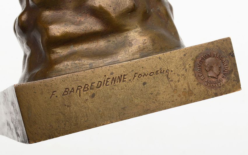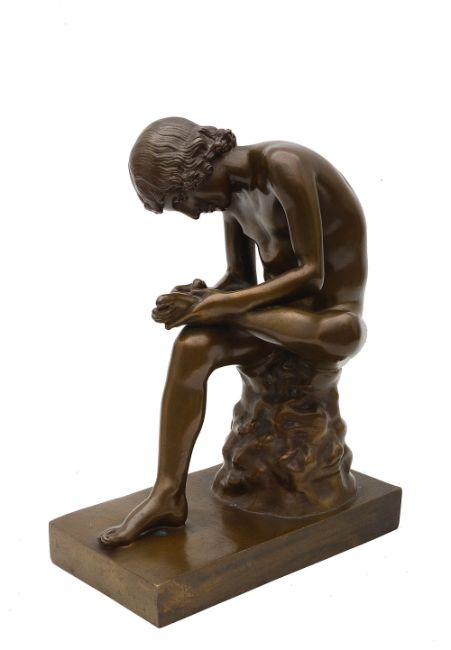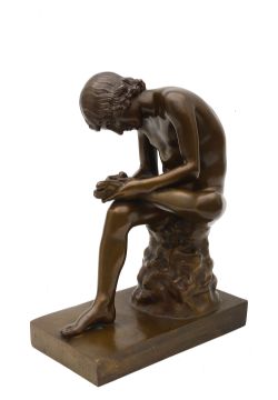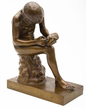 a young boy seated pulling a thorn from his foot, the base bearing a foundry mark of F. BARBEDIENNE, FONDEUR and another stamp 'RÉDUCTION MECANIQUE A. COLLAS BREVETE'